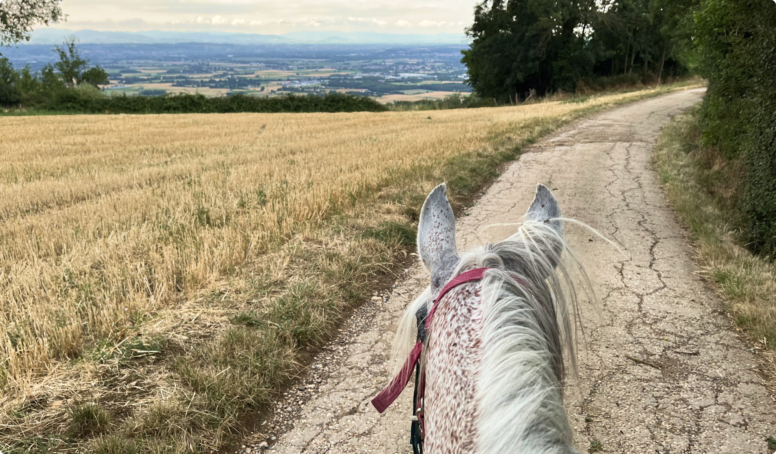 Tous les paysages du Beaujolais : vignes, crêtes, forêts. Grand galops 4/5 km sur route forestière.