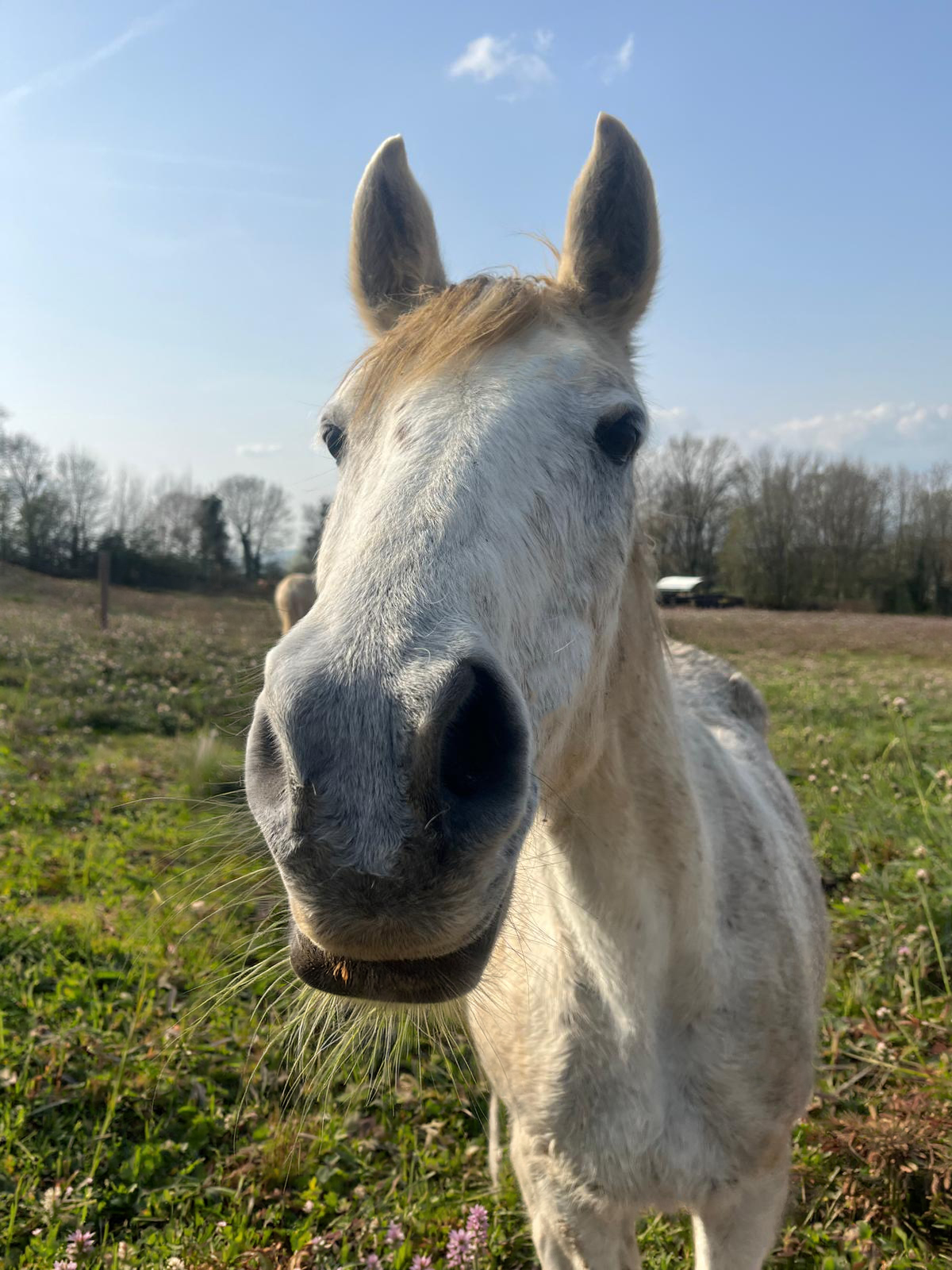Signes particuliers : Une tache blanche entre le garrot et l’épaule